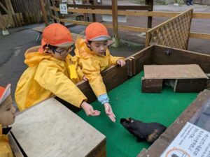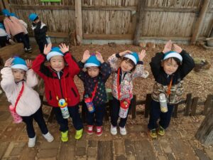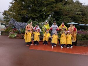 雨は降ってしまいましたが、室内でおいしいお弁当とおやつを食べてニコニコ笑顔の