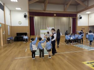年長・年中さん、年少・はなさんの二部に分かれて、交通安全教室のまとめを行いました🚥