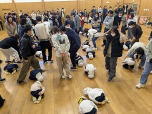 「子ども探し競争」では、お顔と名札を隠してダンゴムシのようになって