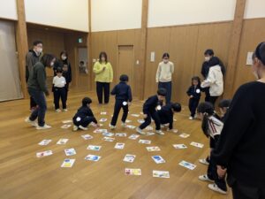 かるたは、年中組になってからみんなで作ってきた「お手製かるた」を使用