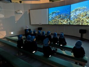 動物のはく製に驚きながらも、目を丸くし興味津々だった年長組さん。