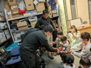 見学させていただいたお礼に「お仕事がんばってね」のカードと花束を渡しました💐